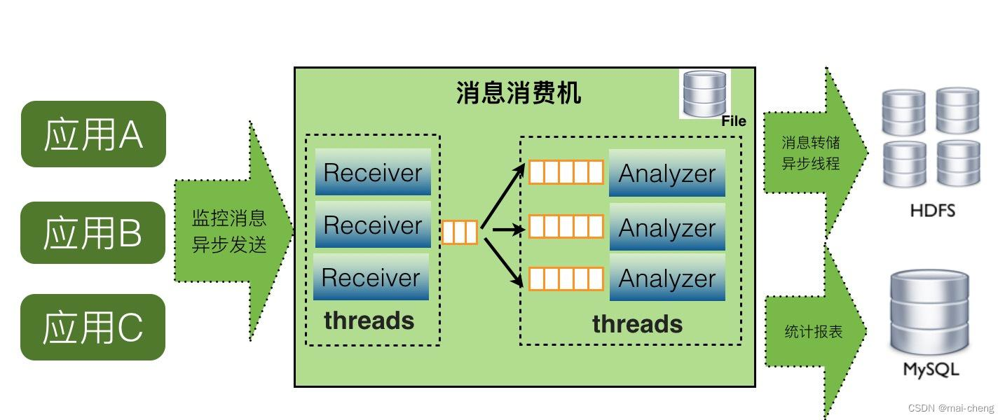 如上图,CAT服务端在整个实时处理中,基本上实现了全异步化处理。
